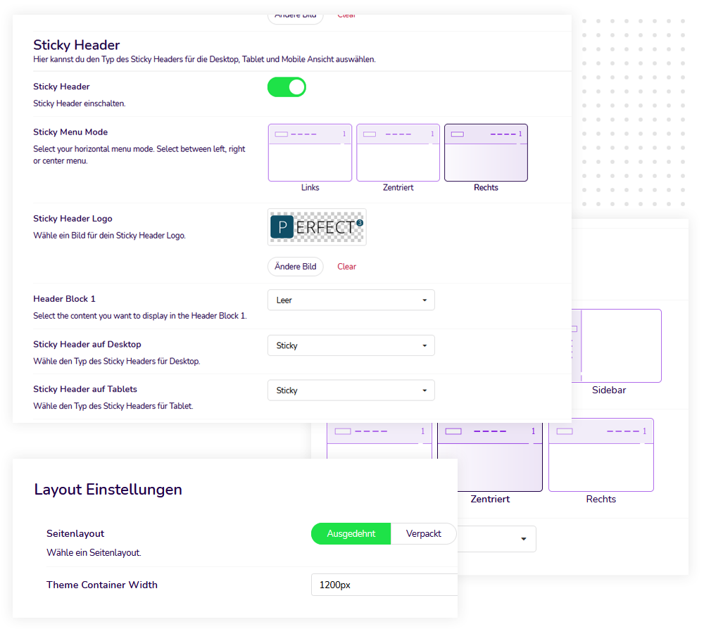Sie haben mehrere Optionen zur Auswahl und können im Layout Manager problemlos zwischen den Headern wechseln.